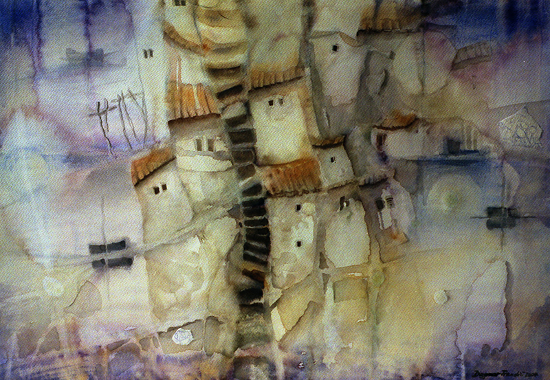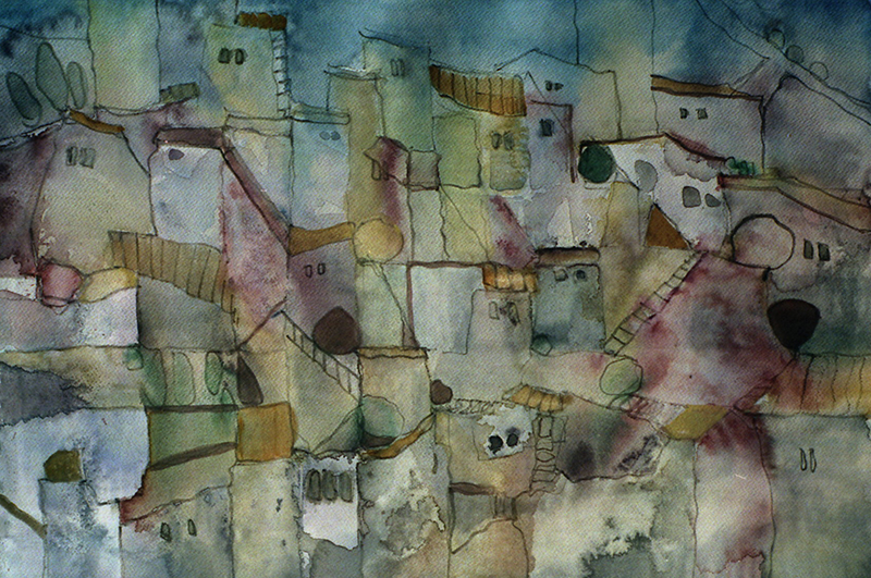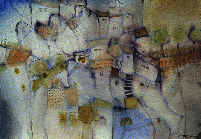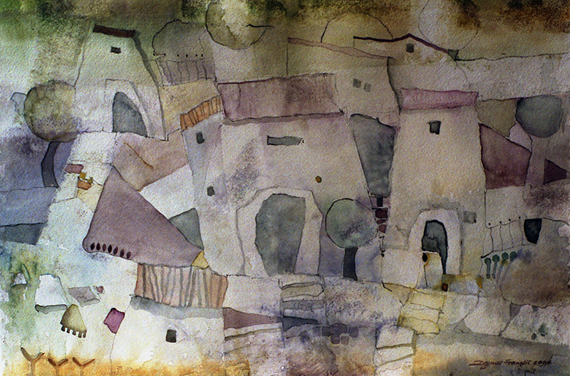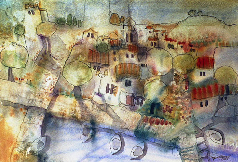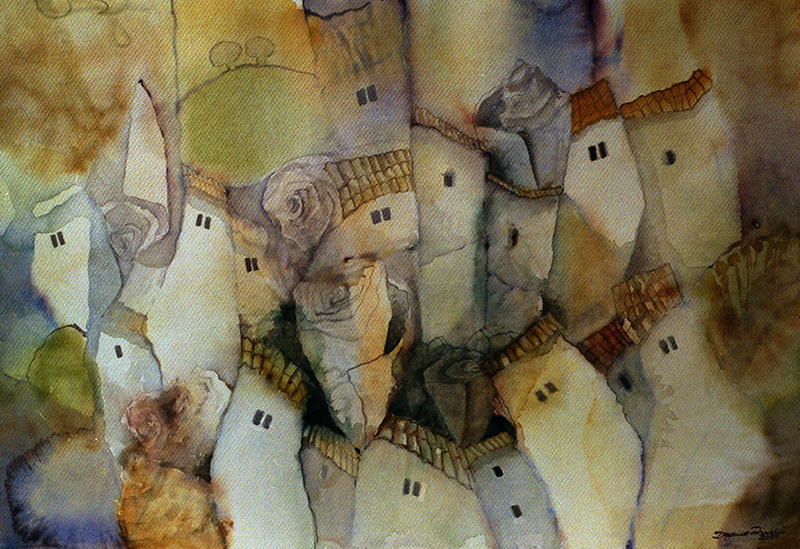 Oblici nisu ograničeni strogošću perspektive, oni egzistiraju u fasetnoj podijeljenosti koja se igra sa stvarnošću skladnim i uravnoteženim likovnim pravilima. Zbijene kuće, stabla, zvonici vođeni snagom vode izranjaju iz podloge. Prozori se ne otvaraju pred našim pogledom, oni nas motre s lica kuća, svečani i njemi.