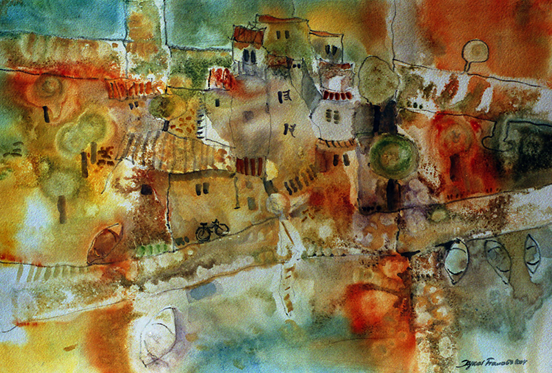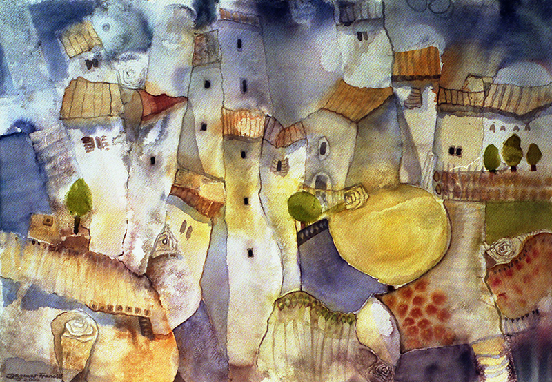 Prepoznatljiv rukopis akvarela Dagmar Franolić vidljiv je u jednostavnosti izraza kojom umjetnica ostvaruje punoću i dubinu prikazanog. Kroz pažljivo izabrane motive naslućujemo tišinu uspavanih gradova, rumor kiše i govore mora. Slobodna perspektiva kuća, ulica, čempresa i skala na njezinim akvarelima ne zbunjuje nas , nekom čudnom igrom uvodi nas u neočekivan svijet slike, prisan i topao.