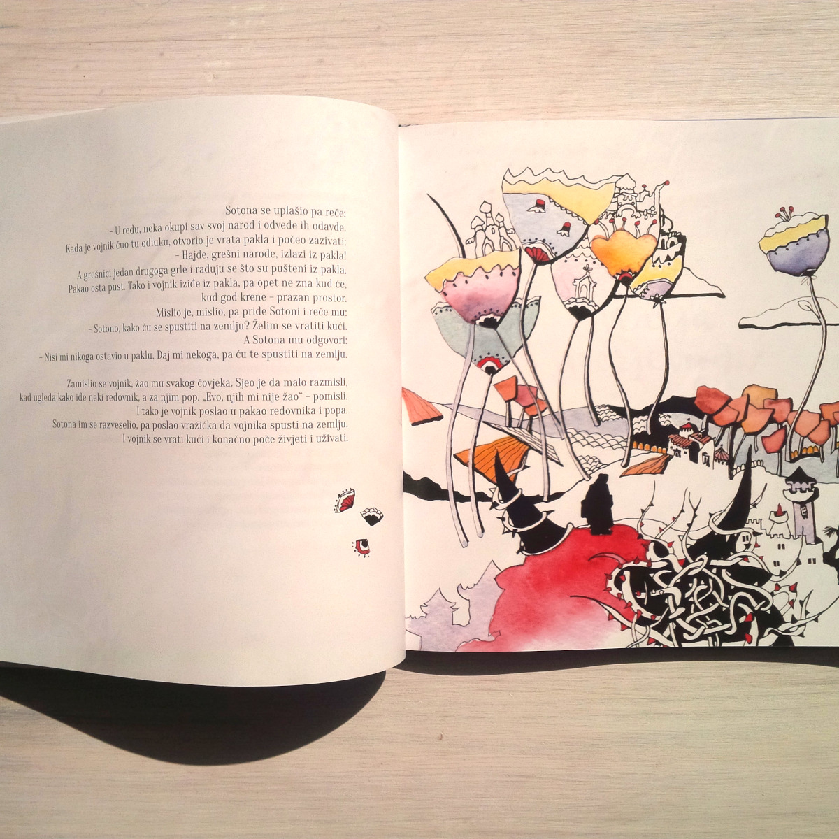 Dagmar Franolić sagt uns, wie die Illustration sie immer angezogen hat und wie sie diese Aufgabe als große und wichtige Herausforderung angesehen hat, um etwas Märchenhaftes zu schaffen, das ihrer Sensibilität nahe kommt und dennoch etwas Neues und Anderes für sie ist. Nachdem sie fast ein Jahr an den Illustrationen gearbeitet hatte, bekam jede Geschichte ihre eigene Illustration – und noch mehr sogar, aber ihre Wahrnehmung, wie das Buch aussehen könnte, wenn es fertig ist, war noch sehr vage. Daher wurden Grafik, Layout und Typografie des Buches von ihrer Tochter Lena Franolić erstellt, was Dagmar weiter ermutigte, weil sie sah, dass ihre Illustrationen in guten Händen waren.