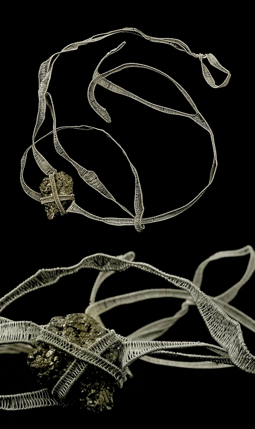Ogrlica / Necklace / Halskette – Lena Franolić 2010 – posrebrena bakrena žica, pirit / silver plated copper wire, pyrite / silberplattierter Kupferdraht, Pyrit