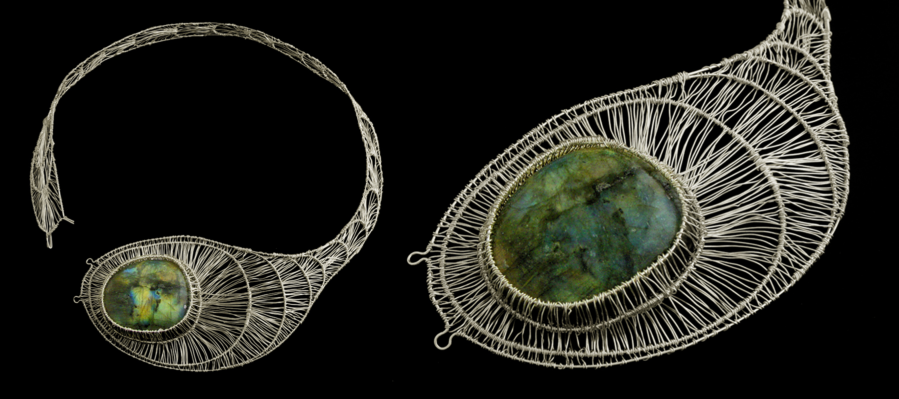 Ogrlica / Necklace / Halskette – Lena Franolić 2010 – posrebrena bakrena žica, labradorit / silver plated coper wire, labradorite / siberplattierter Kupferdraht, Labradorit