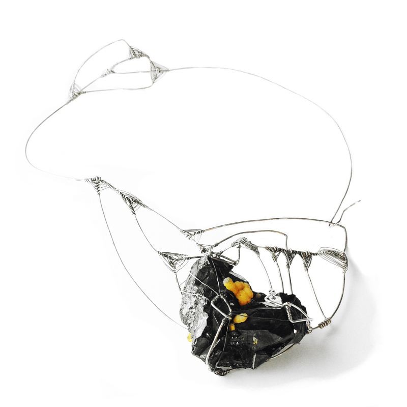 Ogrlica / Necklace / Halskette – Lena Franolić 2010 – oksidirana posrebrena bakrena žica, sfalerit / oxydized silver plated copper wire, sphalerite / oxidierter silberplattierter Kupferdraht, Sphalerit
